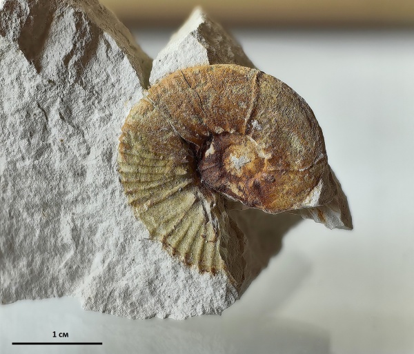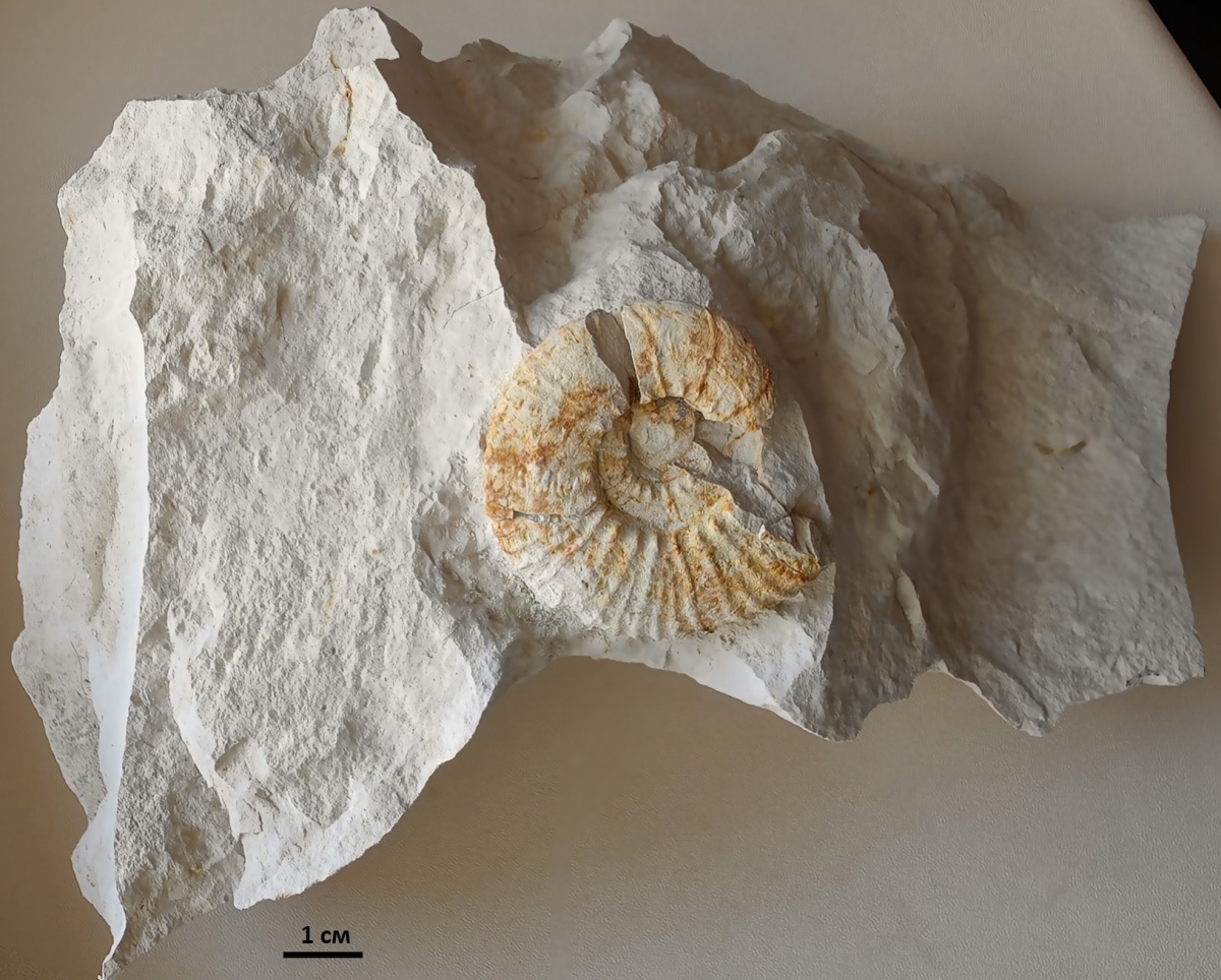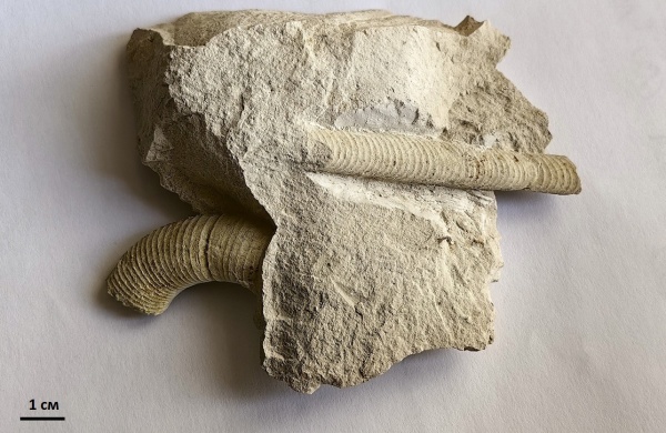 В одном из обломков породы нашли фрагменты ядра гетероморфного аммонита рода Diplomoceras. Аммониты этого рода жили в кампанском –маастрихтском ярусах. Имели U-образную раковину и достигали больших размеров. Кстати, в ходе исследования Diplomoceras ученые выяснили, что продолжительность жизни моллюсков этого рода могла превышать 200 лет.