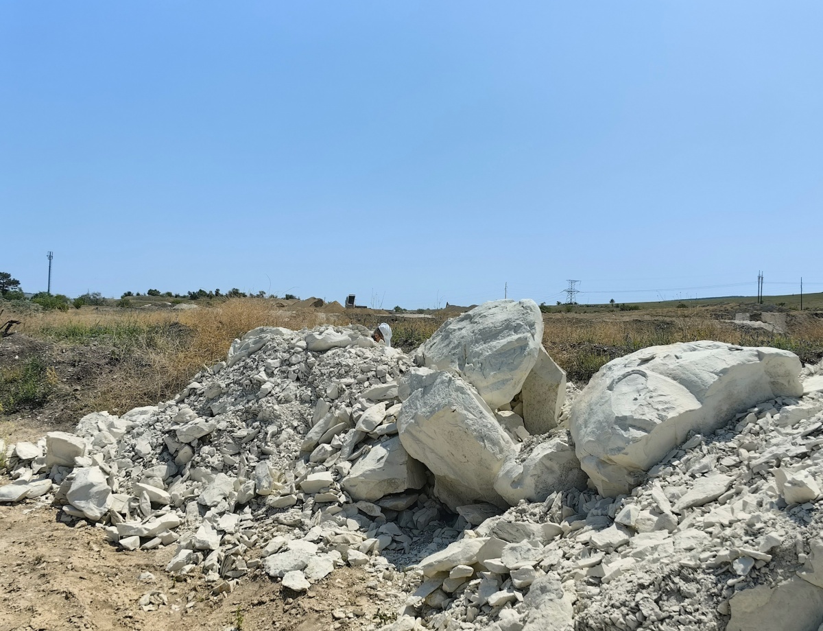 Среди этих выгруженных куч насторожила груда белых верхнемеловых мергелей.