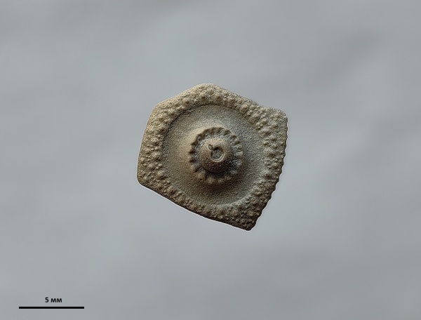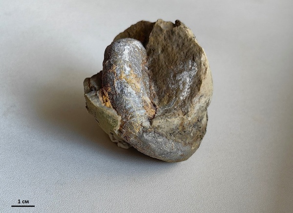 Спасибо за отзыв! Аммонит в процессе расчистки: его раковина с сифональной бороздой. Имеет крепкие первичные ребра изогнутые вперед, которые раздваиваются на боковой поверхности (см.Фото). Если что не так – будем благодарны за помощь в определении. | ||||||