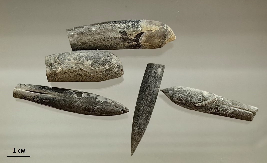 Значительно чаще других фоссилий нам встречались белемниты различных форм и размеров.