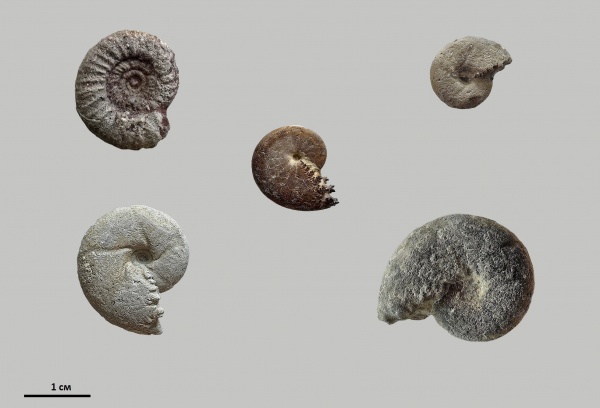 Аммониты: мелкие - в виде ядер, иногда - ожелезненые; крупные – полуразрушенные, отдельные экземпляры были спрятаны в прочных конкрециях.
