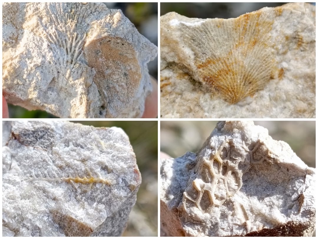 Из горных пород, методическим раскалыванием и измельчением крупных фрагментов, были извлечены разнообразные брахиоподы, обильные мшанки, фрагментарные трилобиты и аммоноидеи.