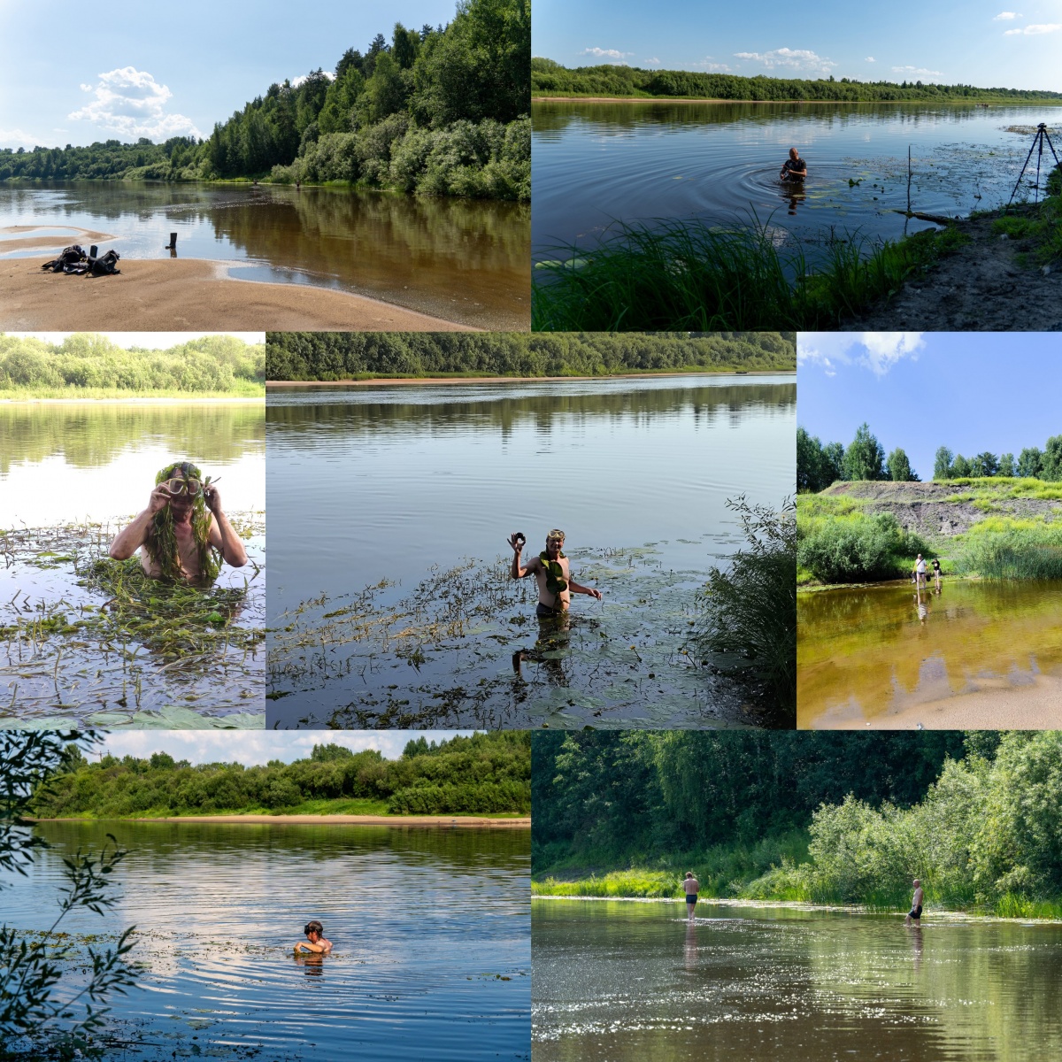 День шестой. Нырятельный. Весь день ныряли, искали аммонитов на дне Унжи.