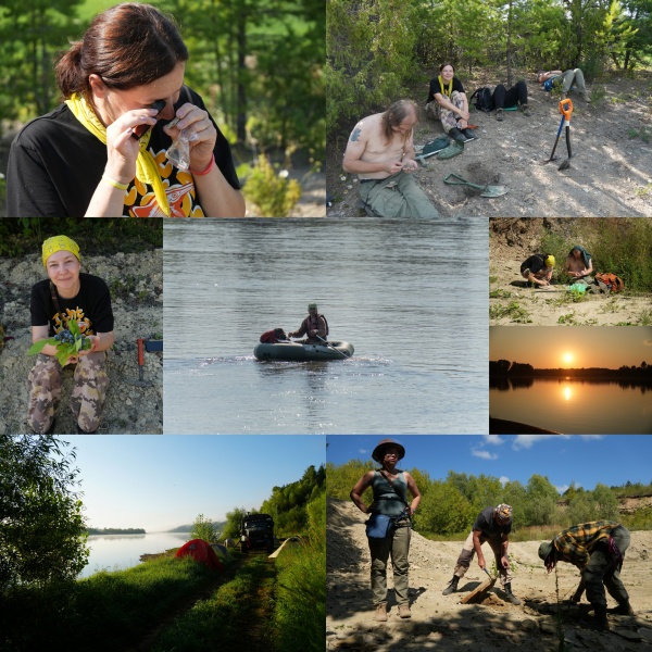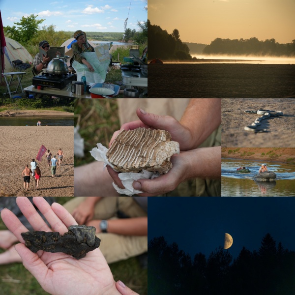 День пятый и шестой провели на берегу Вятки в поисках четвертичной фауны, дождались резиновую лодку с уставшим, но довольным палеонтологом. Правда, он слега проплыл мимо нашего лагеря, хорошо, на берегу были отдыхающие с моторкой, помогли доставить.