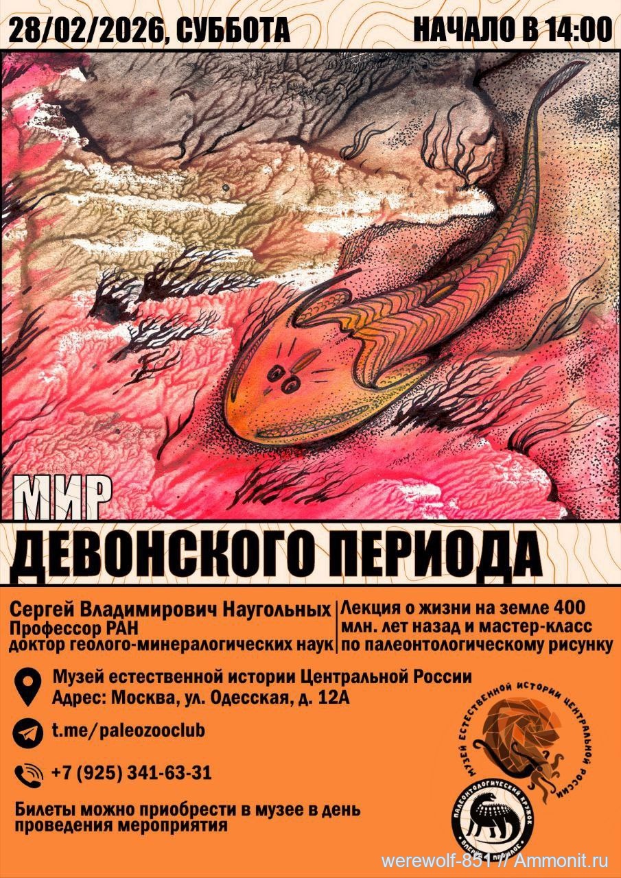 28.02.2026 в 14.00 Сергей Владимирович Наугольных выступит в нашем музее с лекцией и мастер-классом «Мир девонского периода»!