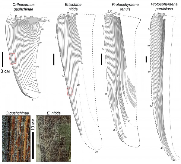 Ключевые слова (тэги): Protosphyraena, Pachycormidae, Protosphyraenidae, Orthocormus, Orthocormus gushchinae, Pachycormiformes