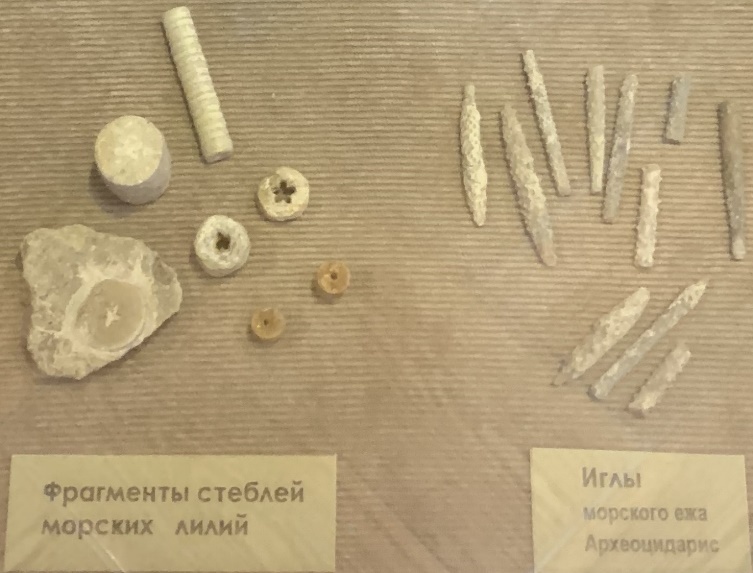 Рисунок 4a Фрагменты морского ежа и морской лилии. Коломенский краеведческий музей. Фото из личного архива автора.