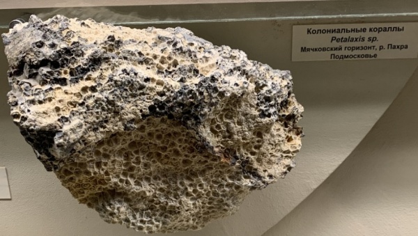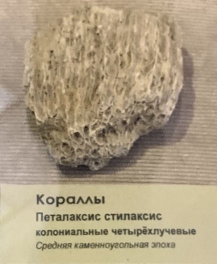 Среди них луч света нашлемного фонаря Анфисы выхватил колонии коралла петалаксиса (лат. Petalaxis). Каменная летопись этого коралла завершается к концу Московского века.