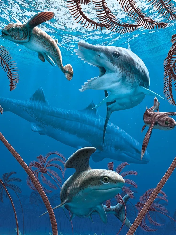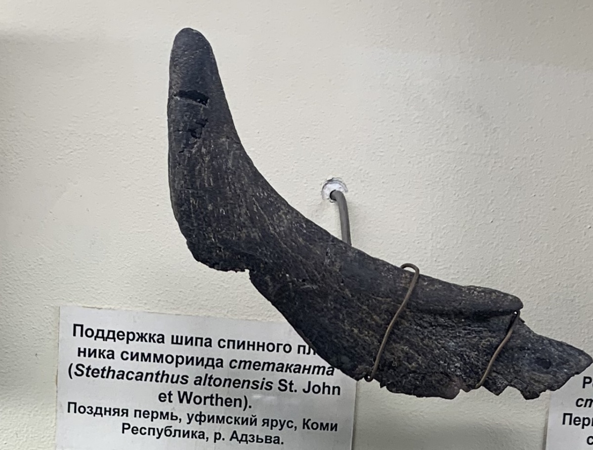 У одной на спине было что-то похожее на гладильную доску, или, если перевернуть, утюг, это была хрящевая рыба, стетакант (лат. Stethacanthus), при чем самец, который этой штукой, подобно хвосту павлина, завлекает самок.