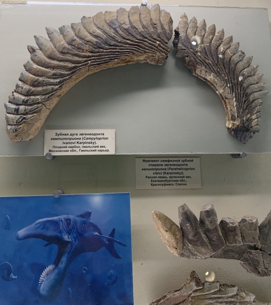 Третья рыбина – знаменитый геликоприон (лат. Helicoprion) с диском циркулярной пилы вместо зубов во рту.